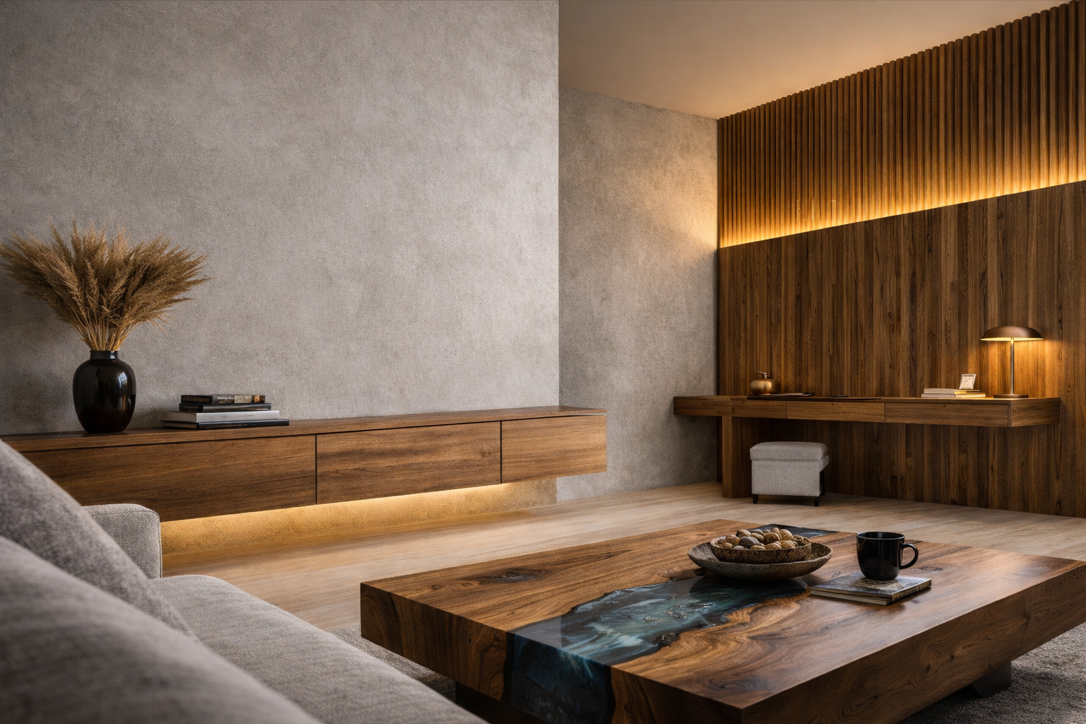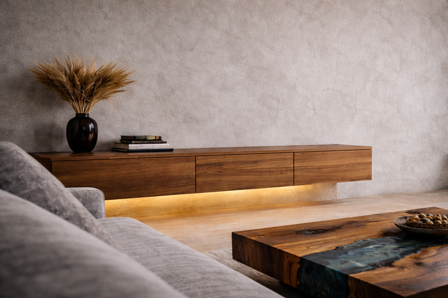Floating Series • Wall Panels • Feature Walls • Fold-Down Wall Desk • Resin Tables